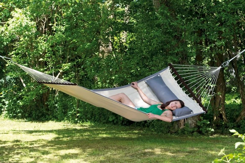De Amazonas American Dream doet zijn naam eer aan! Deze hangmat is echt een hangmat om van te dromen of om in weg te dromen 😉 Dankzij de spreidstok is de hangmat goed in balans en de stof is voorzien van een vulling voor extra comfort. Daarnaast wordt de hangmat geleverd inclusief een kussen die afneembaar is. Deze hangmat is gemakkelijk op te vouwen in de bijgeleverde zak, maar houdt er rekening mee dat deze minder gemakkelijk mee te nemen is dan andere hangmatten dankzij zijn gewicht van 3,3 kg.