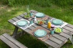 De picknicktafel heeft een ABS tafelblad. Dit betekent dat het blad wel vochtbestendig is, maar niet hittebestendig. Hoewel er tijdens een kampeervakantie echt wel geleefd mag worden, is het zonde als de tafel al snel blijvende vlekken heeft. Vergeet dus geen onderzetters mee te nemen, zodat je de picknicktafel niet beschadigt.