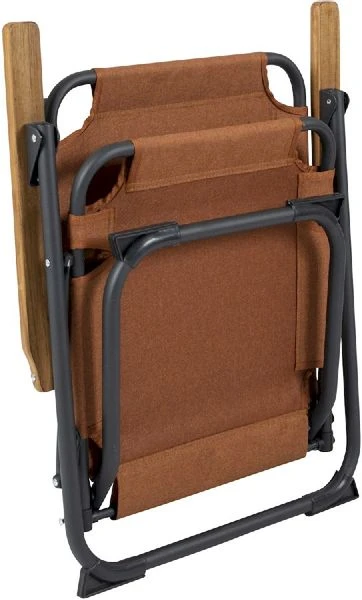 De stoel is uitgevoerd met een zwart aluminium frame en is voorzien van luxe Cationic bekleding. De houten armleuningen, het zwarte frame en de luxe bekleding zorgen voor een stoer design. De stoel kan een maximaal gewicht van 100 kg aan en weegt slechts 2,3 kg.