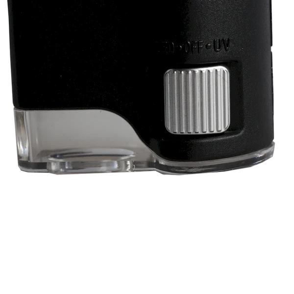 Deze handmicroscoop is handig voor onderweg en beschikt over een behoorlijke vergroting. Ideaal dat hij ook nog eens supermakkelijk te gebruiken is. De batterijen plaats je simpelweg achter het klepje en je kunt meteen aan de slag. Met de schakelaar naar links zet je de LED verlichting aan en naar rechts het UV licht. Onderzoeken maar!