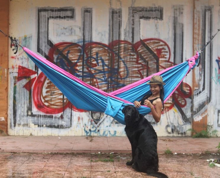 De reishangmat is dus gemaakt van parachutestof. Lichtgewicht en een compact formaat zijn maar een van de vele voordelen. De 2 persoons hangmat is door de stof ademend en licht elastisch, waardoor de hangmat zich perfect naar jouw lichaam vormt. Niet alleen maakt dit het slapen een stuk comfortabeler, maar het heeft ook nog een positieve invloed op jouw bloedsomloop. Het materiaal zorgt er ook voor dat de hangmat rot bestendig, sterk en sneldrogend is. Geen stress dus dat jouw hangmat de rest van je spullen nat maakt in je backpack.