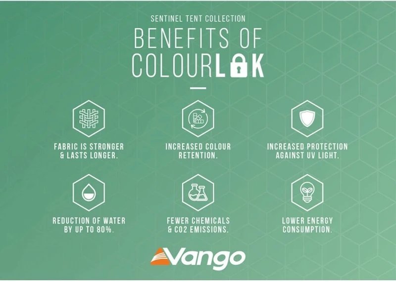 De polyester buitentent heeft een waterkolom van 3000 mm en is daarmee erg waterdicht. De schuine stokken geven extra stabiliteit en beschermen zelfs tegen zijwind. Daarnaast zorgt het speciale Vango Tension Band systeem ervoor dat deze topper ook bij harde wind stevig blijft staan. De tent wordt geleverd met een grote, stevige draagtas met extra volume. Zo weet je zeker dat de tent áltijd past!